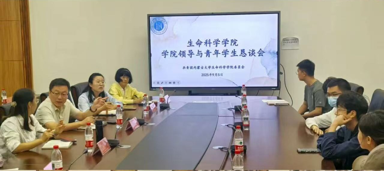 2025年9月5日上午10:00,生命科学学院在国重120会议室召开学院领导与青年学生恳谈会,内蒙古大学学术副校长兼生命科学学院院长胡薇、生命科学学院党委书记徐军、党委副书记季晓岚、内蒙古大学团委挂职副书记娜仁其其格、陈辰,生命科学学院行政办、教务办、学科科研办、学工办负责人以及学院青年学生代表30余人参会,团委副书记兼学生工作办公室副主任管文荻老师主持会议。恳谈会立足团委在思想引领和权益服务两方面的基本任务...