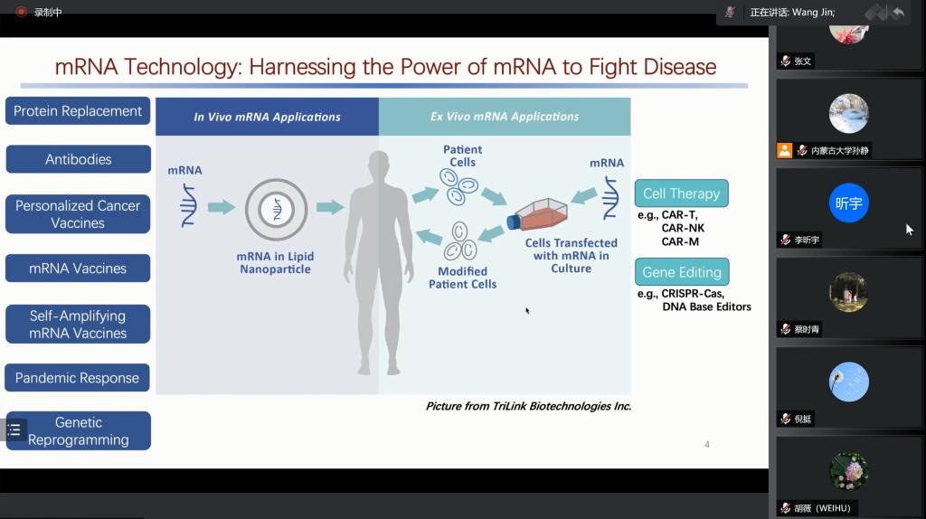 王进,DB中国旗舰官方网站研究员,博士生导师,生物分析化学与化学生物学实验室负责人,兼任省部共建草原家畜生殖调控与繁育国家重点实验室研究员,主要研究方向包括核酸化学生物学、核酸化学修饰、质谱分析、生物分析化学,已在Nucleic Acids Research、Journal of Clinical Investigation、Nature 等国际学术期刊上发表多篇论文。王进研究员围绕‘mRNA加帽的生物学功能和应用’进行了有关mRNA的基础知识、最新进展及其近期研究工作(Wang. J. et al. Nucleic Acids Res 2019:e130.)的介绍。另外,他阐述了近年来自己所研发的mRNA加帽技术‘CapQuant’方法,该方法不仅适用于定量体内或体外来源RNA,还可用于研究多种生物过程,包括RNA代谢、特定的转录问题、揭示基因表达、以及端帽结合蛋白调控基因表达等。