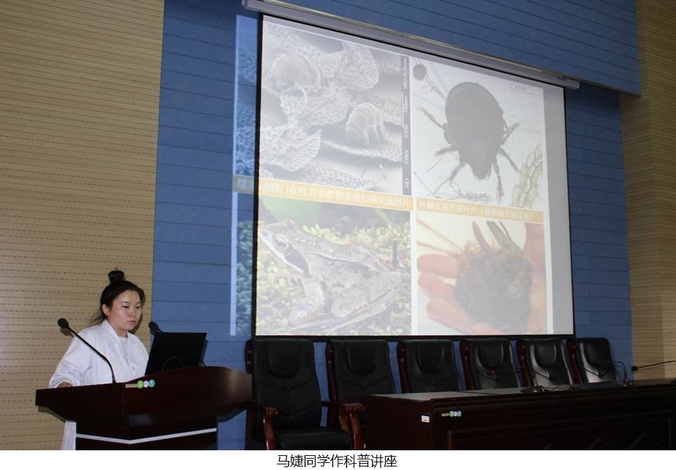 活动开始,科普活动负责人毛惠平老师为三十五中的同学们介绍了我校和生命科学学院的建设历史及目前生物学一流学科的发展情况。然后,马婕、丁康和张燕三位研究生图文并茂地为同学们分别从苔藓植物、生殖生物学及丛枝菌根真菌方面做了三场科普讲座。他们用大量的生活案例配合着生动的影像,深入浅出地描绘了苔藓植物的多样性,动物精卵结合形成受精卵和胚胎发育过程以及各种植物与菌根的共生关系。同学们纷纷被有趣的生物学知识吸引,求知的目光紧紧盯着大屏幕。科普报告结束时,同学们纷纷鼓掌。并表示收获颇多,希望此类活动能经常开展,开阔大家的科学视野,丰富科学知识。毛惠平老师鼓励在场的学生们要热爱科学、勇于探究并积极实践,逐步培养科研兴趣,以创新思维引领科学发展。