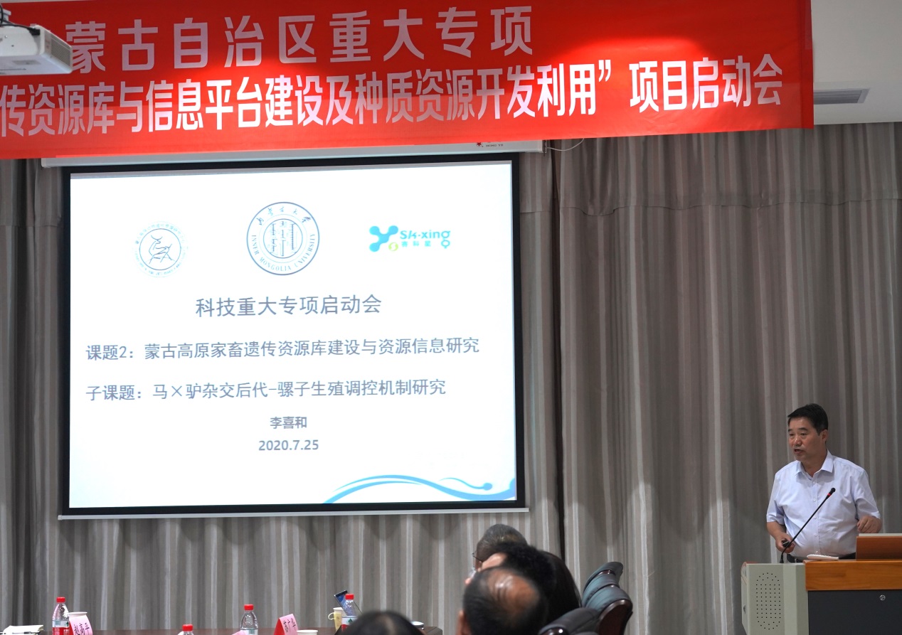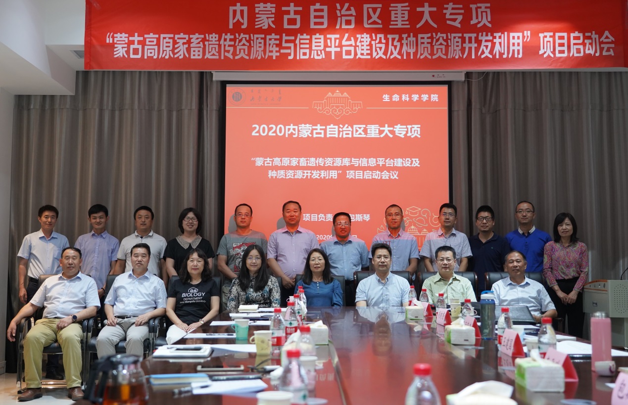 2020725日,我校2020年获批的内蒙古自治区重大专项 “蒙古高原家畜遗传资源库与信息平台建设及种质资源开发利用”项目启动会在内蒙古大学生命科学院召开。我校科技处副处长朱保华和生命科学院王潇教授出席开幕式并致辞,项目总负责人生命科学院包斯琴教授主持开幕式。子课题主持人生命科学院李喜和教授、生命科学院李雪玲教授、内蒙古农业大学曹贵方教授、内蒙古乐科生物技术有限公司项目负责人胡树香和内蒙古乐科生物技术有限公司项目负责人分别进行了专题报告。参加本次项目启动会的还有内蒙古自治区农牧业科学院王峰教授、内蒙古农业大学计算机学院院长高静教授、内蒙古农业大学兽医学院李海军教授、赛科星研究院育种中心主任孙伟、赛科星研究院实验基地主任赵高平和项目骨干成员,并分别作了专题报告。项目启动会针对研究工作中提到的遇到的关键问题、技术攻关和产业化应用等问题展开了深入热烈的讨论。