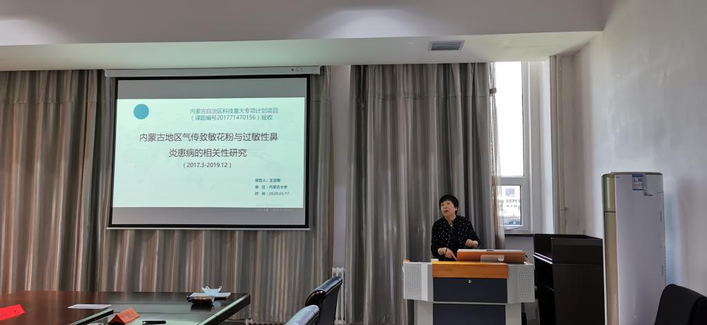 《内蒙古地区气传致敏花粉与过敏性鼻炎患病的相关性研究》(项目负责人:王迎春教授)初步确定内蒙古地区空气中花粉尤其是致敏花粉的种类及含量,每年春季和秋季为花粉爆发期,春季以木本类花粉为主,主要为木犀科、桦木科 、松科花粉; 秋季以草本和灌木植物花粉为主,主要为菊科蒿属、禾本科花粉;蒿属花粉在4个样点占比均较高,推测可能是我区过敏性鼻炎患病的原因之一。研究结果为分析我区气传致敏花粉与过敏性鼻炎的相关性提供基础数据。