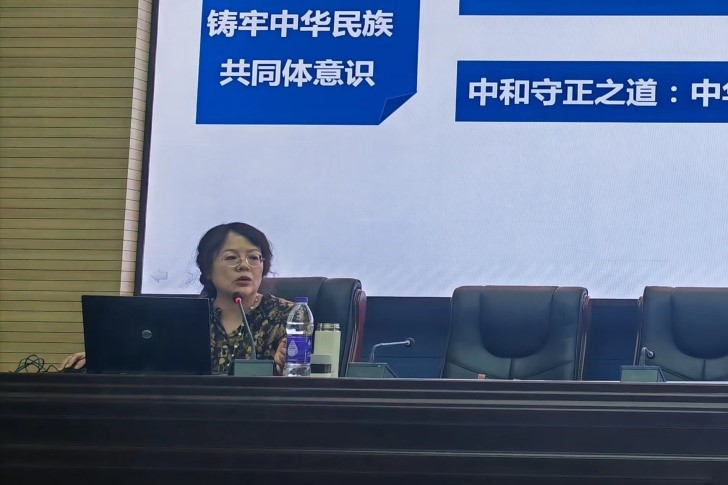 陈智教授以“牢牢把握团结奋斗的时代要求,全面准确理解铸牢中华民族共同体意识的深刻意蕴”为题,全面阐释了中华民族共同体意识的历史文化内涵、中华传统文化渊源,从历史文化角度帮助师生们深刻理解和准确把握铸牢中华民族共同体意识的形成、发展和历史渊源,引导各族师生进一步牢固树立休戚与共、荣辱与共、生死与共、命运与共的共同体理念,激励广大党员为巩固和发展平等团结互助和谐的民族关系,推进各民族共同团结进步、共同繁荣发展作出自己的贡献。