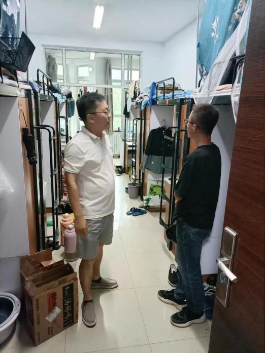 院党委副书记徐军和辅导员走访了学生宿舍,了解学生暑假工作情况和生活情况,提醒学生做好个人管理,强化安全意识,做到防微杜渐。
