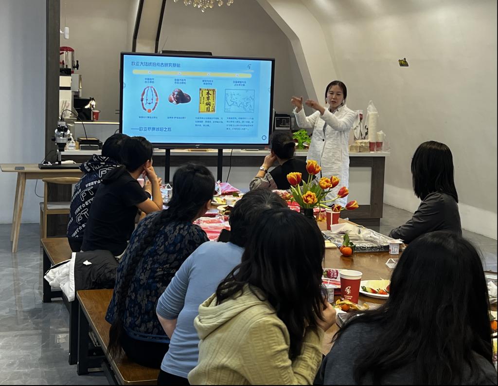 内蒙古大学历史与旅游文化学院马燕副教授带领老师们参观了神凫琥珀博物馆,给大家讲解了琥珀的药用价值及研究意义。