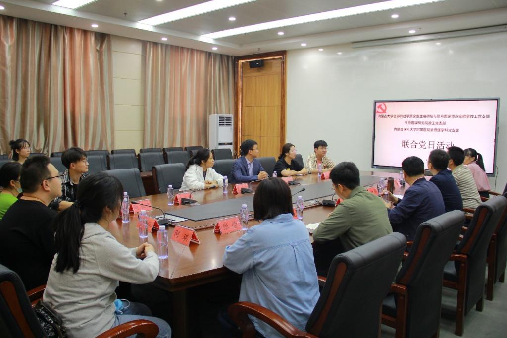 在全党开展党纪学习教育之际,2024年4月25日下午,内蒙古大学省部共建草原家畜生殖调控与繁育国家重点实验室教工党支部、生物医学研究院教工党支部与内蒙古医科大学附属医院重症医学科党支部,在生命科学学院举办联合党日活动。