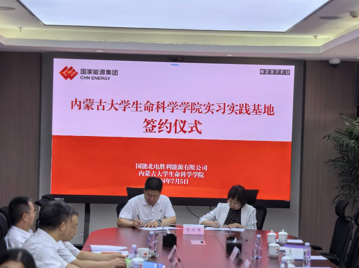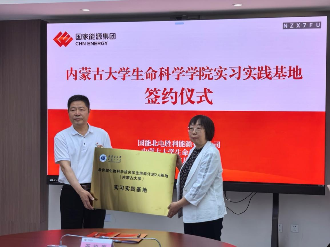 为落实《教育部关于加快建设高水平本科教育全面提高人才培养能力的意见》和《教育部等六部门关于实施基础学科拔尖学生培养计划2.0的意见》等文件要求, 提升教育部生物科学拔尖计划2.0基地学生的实践能力和科研素养,对接煤矿区的生态修复与环境保护研究工作。7月5日上午,生命科学学院与国能北电胜利能源有限公司签署了共建实习实践基地协仪,并举行揭牌仪式。国能北电胜利能源公司党委副书记、总经理孟峰,学校教务处副处长王鑫、生命科学学院党委书记张慧荣、副院长李东明、教育部重点实验室副主任齐建建、草地植物资源研究方向负责人包玉英教授、教师代表,及国能北电胜利能源有限公司相关部门负责同志出席了签约仪式。仪式由国能北电胜利能源有限公司总经理孟峰主持。