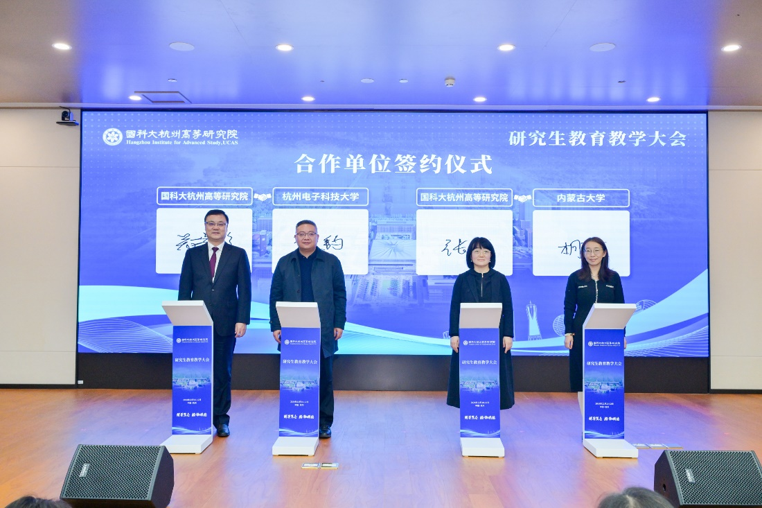 12月11日,中国科学院大学杭州高等研究院(简称“杭高院”)在杭高院多功能报告厅召开了“研究生教育教学大会”,会上生命科学学院与杭高院生命与健康科学学院签订了关于优秀本科生联合培养的协议。杭高院常务副院长郑崇辉、杭高院生命与健康科学学院执行院长张宇、DB中国旗舰官方网站院长胡薇、校教务处副处长李东明和生命科学学院副院长那顺布和等参加了签约仪式。