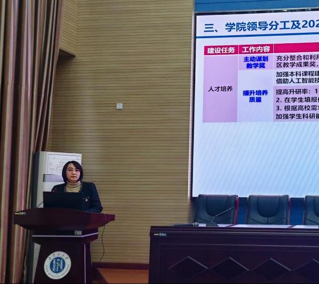 副院长王潇、那顺布和、倪挺及院长助理苑琳教授分别针对科研、研究生教育、人才引育和本科生教学等相关工作做出说明和部署。