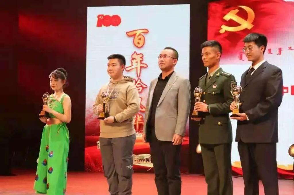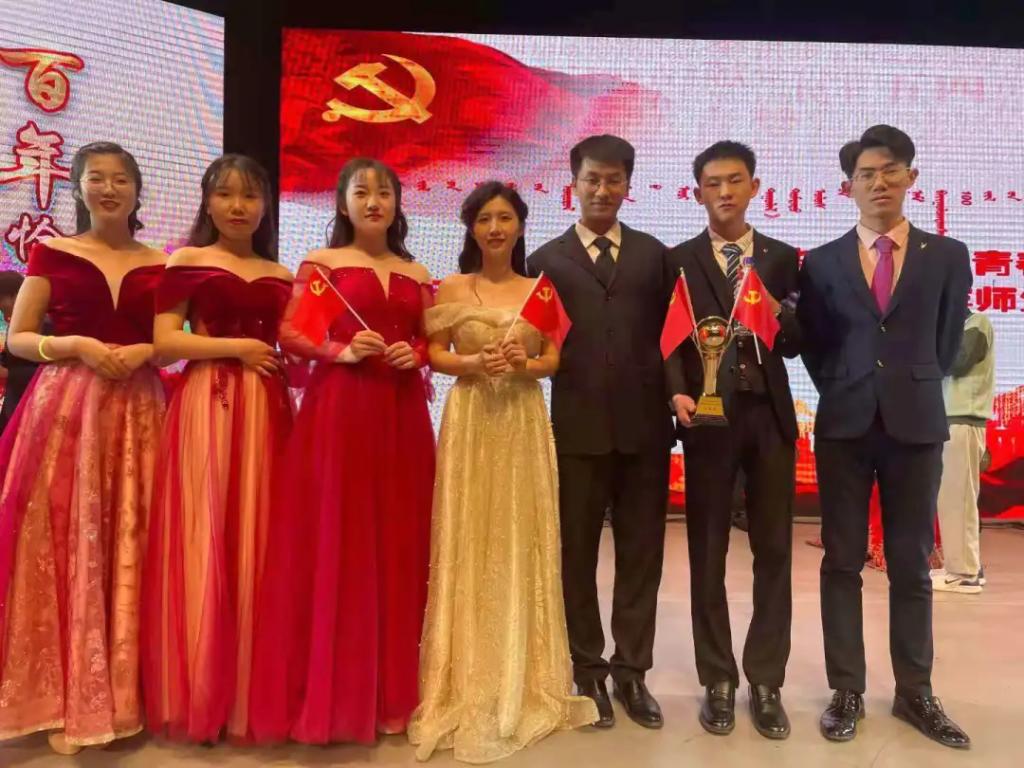 百年巨变,千载华章,始于初心。中国共产党的出现,划破了旧中国的黑暗,为人民带来新的希望和光明!DB中国旗舰官方网站代表队的师生合诵作品《历史的眼眸》深情诉说了对党百年华诞的祝福。经过激烈的角逐,DB中国旗舰官方网站荣获此次大赛优秀奖,自治区团委学校部副部长刘智博为获奖队伍颁奖。颁奖环节结束后,现场观众手持党旗,合唱《没有共产党就没有新中国》,唱出对中国共产党的祝福与赞美。