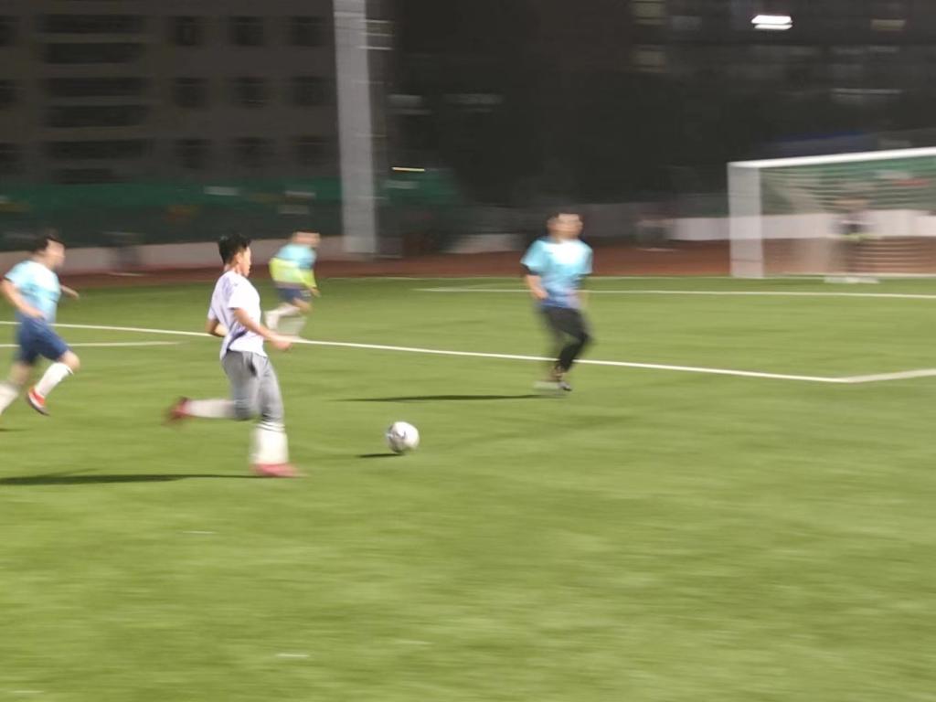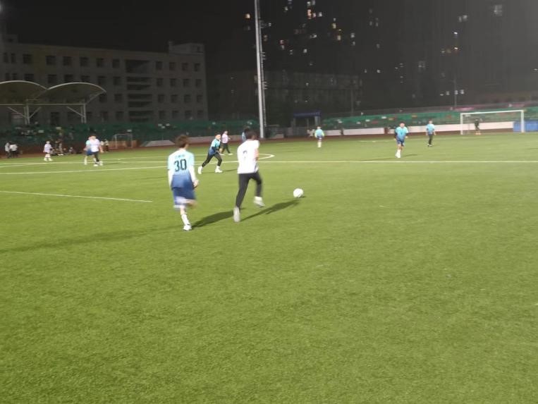 在这一场比赛中,两支队伍展开了激烈的对决。身穿蓝色球衣的生命科学学院球员有条不紊地控制着进攻节奏。进攻时,前锋与队友配合将球射入对方球门;防守时,守门员一跃而起将球扑出。队员们思维敏捷行动迅速,最终以31的比分拿下比赛。