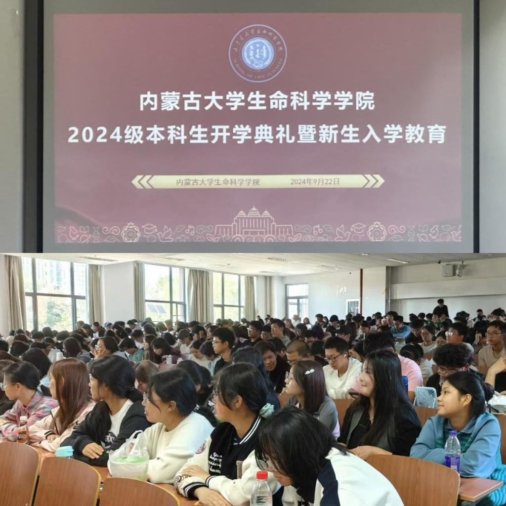9月22日下午,生命科学学院在卓越楼教室召开2024级本科生开学典礼及新生入学教育大会。学院党委书记张慧荣,院长胡薇,党委副书记徐军,副院长王潇、那顺布和、李东明、倪挺,院行政办主任张彦桃、院团委书记兼学工办主任季晓岚,院科研办副主任孙静、专职辅导员王予彤,教务办老师张潇捷以及2024级全体本科生280人参加了大会。大会由党委副书记徐军主持。