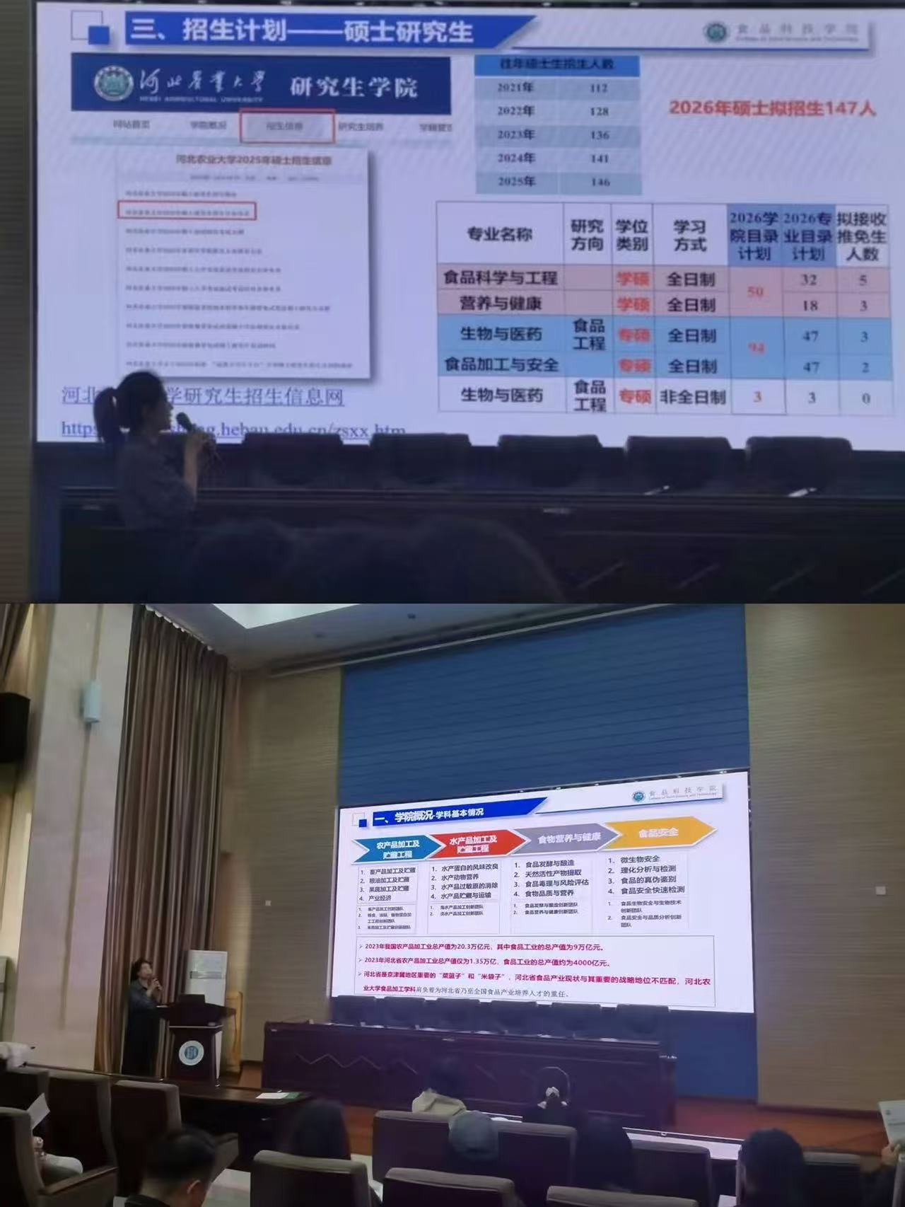 河北农业大学食品科技学院的老师以生动详实的讲解,将学院的历史底蕴、学科优势、雄厚师资、高端科研平台一一呈现。