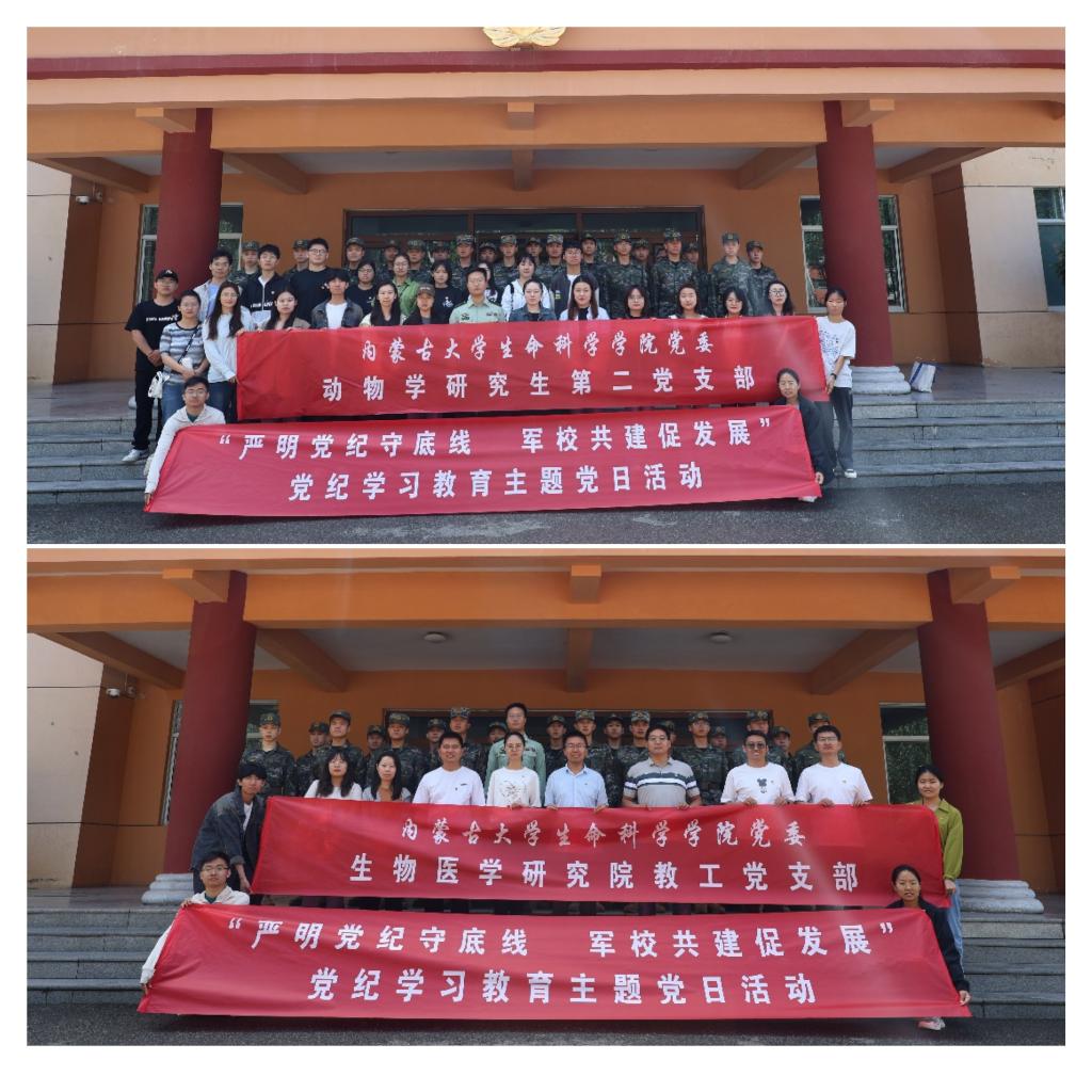 为深入推进党纪学习教育,积极开展党建共建交流。6月7日,生物医学研究院教工党支部与生命科学学院研究生动物学第二党支部赴武警驻呼某中队联合开展了“严明党纪守底线 军校共建促发展”党纪学习教育主题党日活动。生物医学研究院教工党支部成员、生命科学学院研究生动物学第二党支部党员代表参加此次活动。
