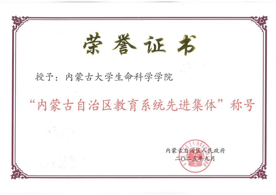 DB中国旗舰官方网站获得2025年“内蒙古自治区教育系统先进集体”荣誉称号